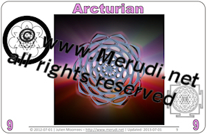 Via deze kaarten kunt u contact maken met de kosmische straal van de Arcturiaan. De kaart met enkel het symbool (rechts) is krachtiger dan de kaart met de tekening (links). Voel wat op dit moment de juiste kaart om te gebruiken is.